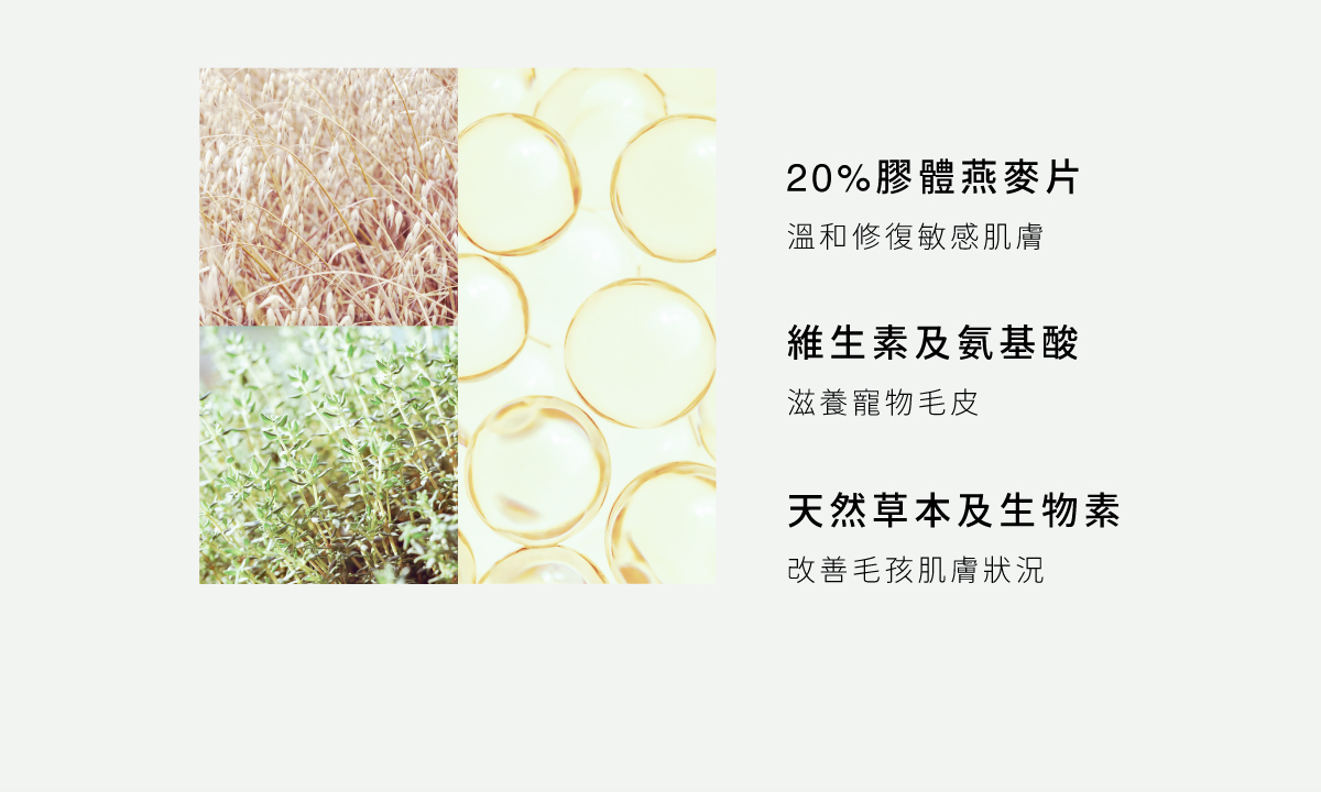 獨家添加高達20%膠體燕麥片成分,幫助滋潤皮膚,減少搔癢。