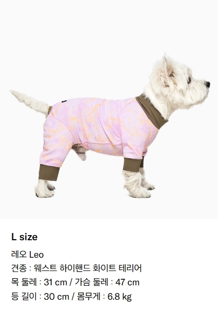 .脖圍28cm / 胸圍50cm / 背長34cm / 體重7.5Kg