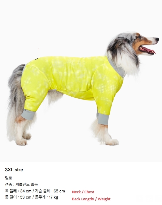 .脖圍34cm / 胸圍65cm / 背長53cm / 體重17Kg