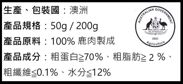 ◆ 低敏鹿肉,含鐵質,顧腸胃!